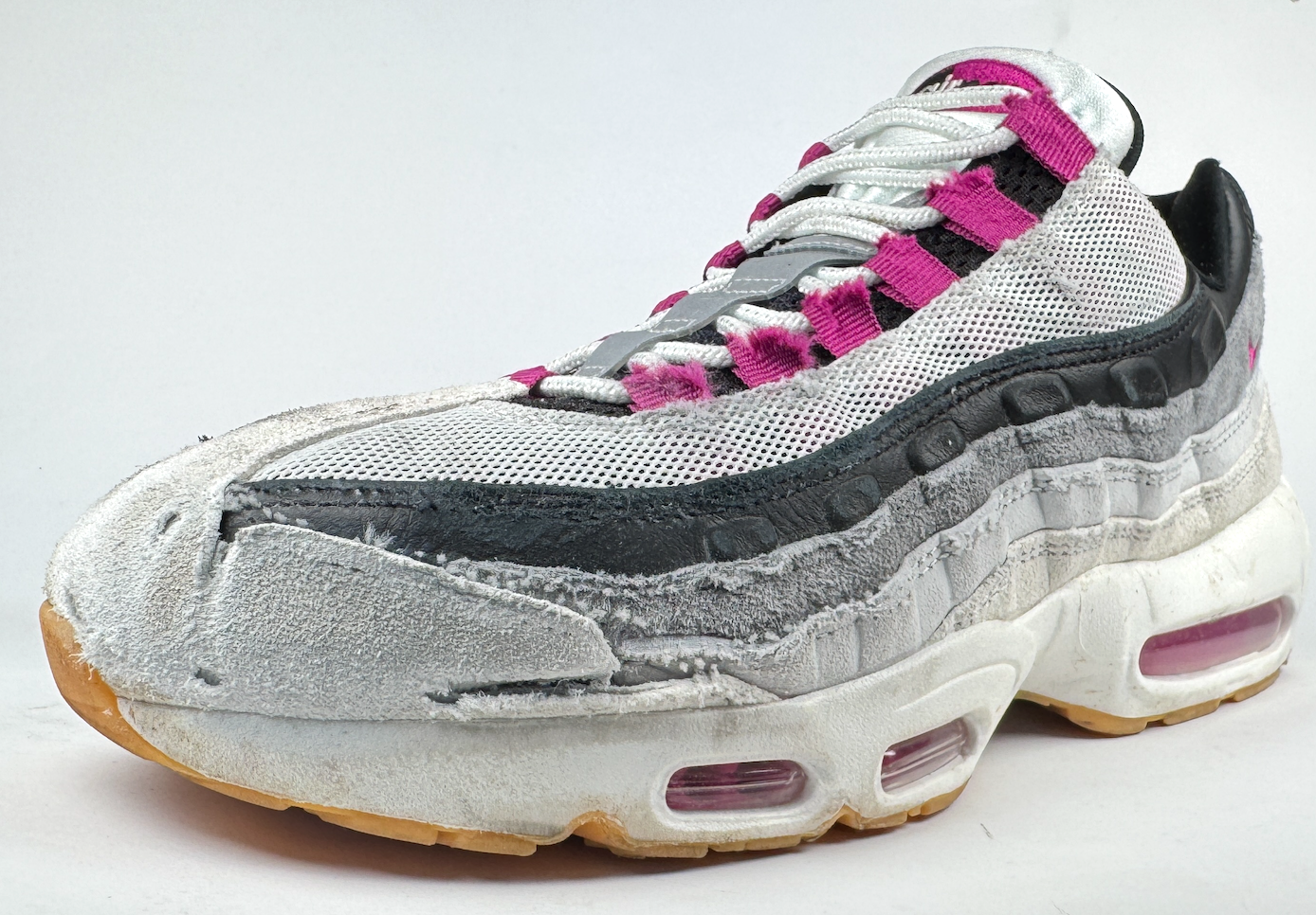 During our 10-hour wear test, the sidewall of the sole remained virtually untouched, while the upper absorbed most of the griptape contact. The construction cleverly combines suede and leather overlays in critical areas like the toe and sidewall, while the mesh panels sit higher on the toe box, away from direct abrasion. This thoughtful material placement delivers excellent flick without compromising the original Air Max 95 design language.